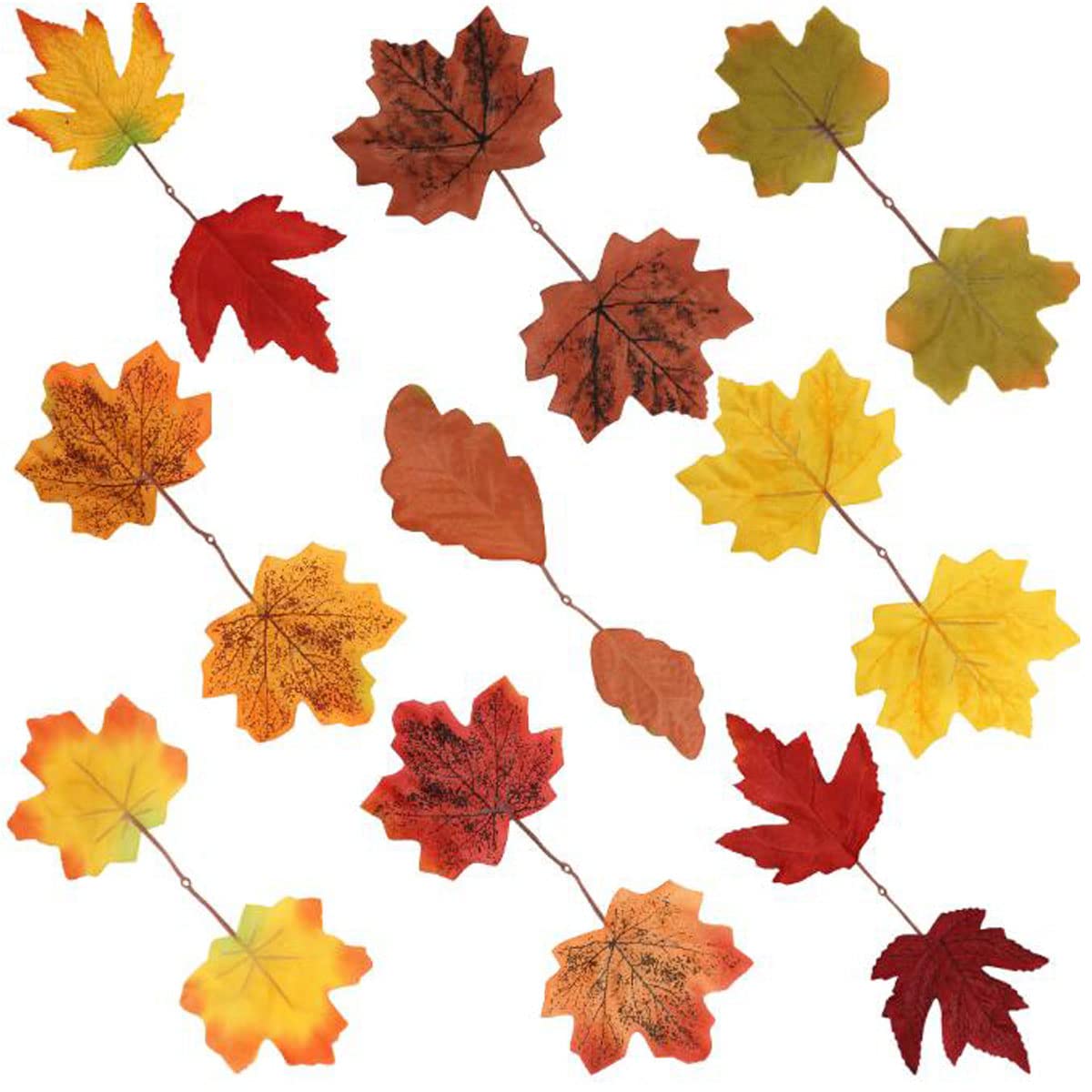 Ewanda store 100 Pcs Artificial Maple Leaves Autumn Fall Leaves Bulk Assorted Mixed Garland for Craft,Wedding,Festival,Thanksgiving Party Decorations