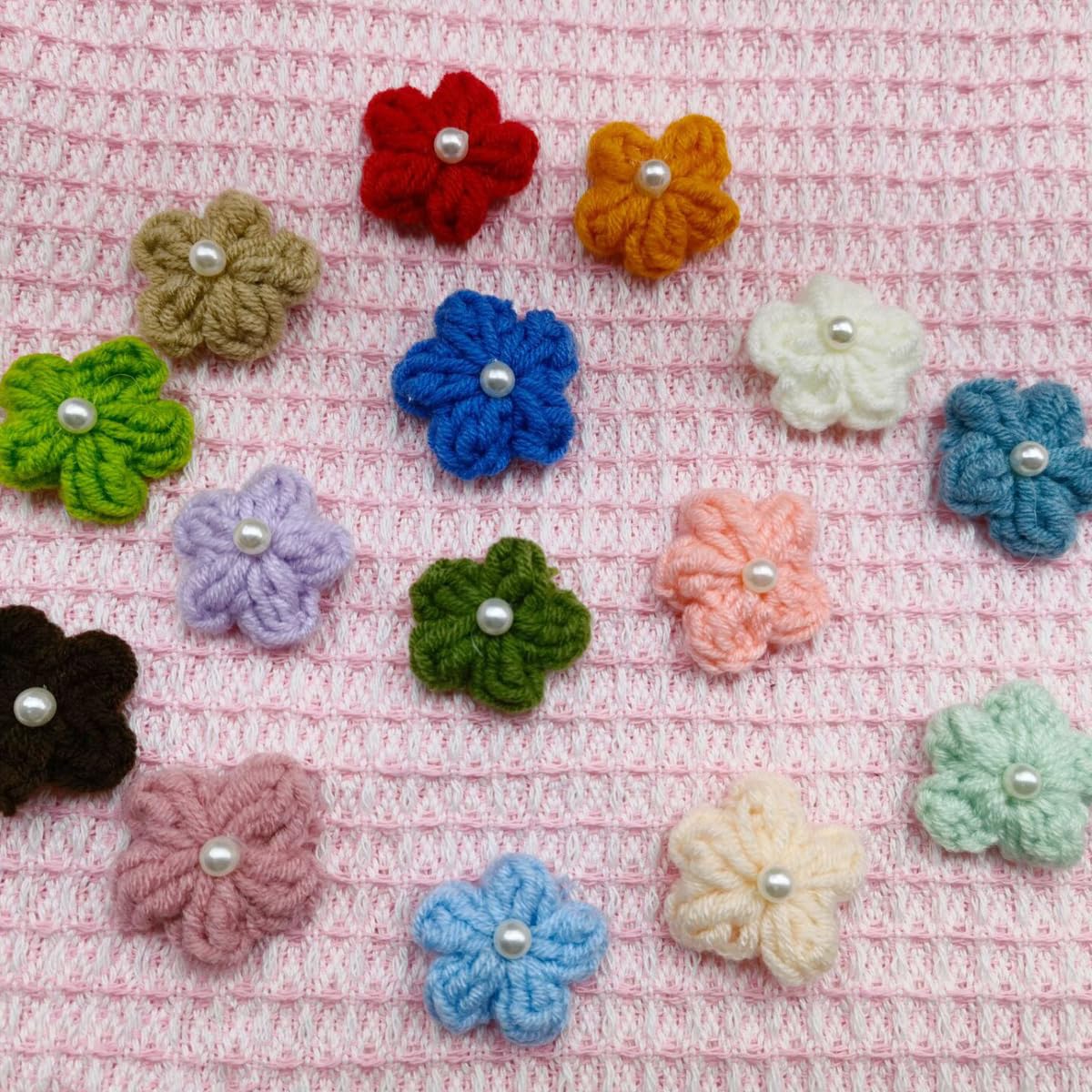 Ewanda store 100Pcs Crochet Flowers Knitted Handmade Crochet Wool Pearl Flowers for Crafts Embellishments DIY Hair Clothing Accessories Sewing Appliques,Mixed Colors