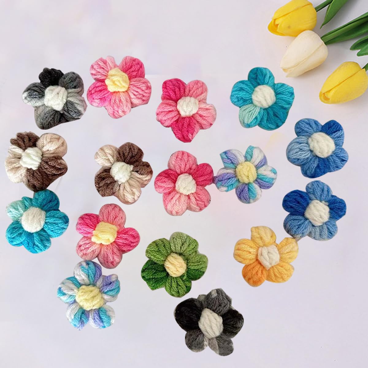 - 💐🌺🍓Packing list: You will get 100pcs mixed color knitted crochet flowers.