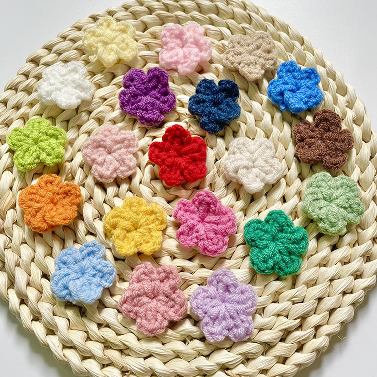 - 🍄🥰🌸Packing list: You will get 100pcs mixed color knitted crochet flowers.