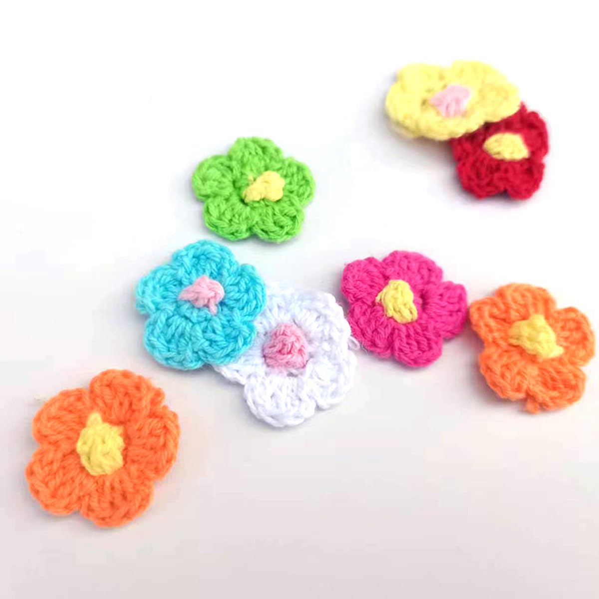 Ewanda store 100Pcs Mixed Two Colors Hand Crochet Flowers Knitted Crochet Wool Flowers for Crafts Embellishments DIY Hair Clothing Accessories Sewing Appliques