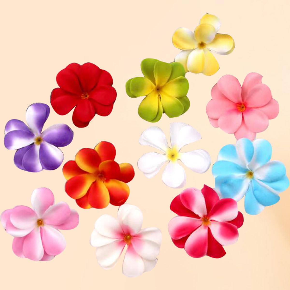 - 😍🍄🌺Romantic flower petals:The color is fresh and light which looks very romantic.These plumeria flowers can float on the water,so can be placed in water as well, and table decorations. Many colors are available for your choice.