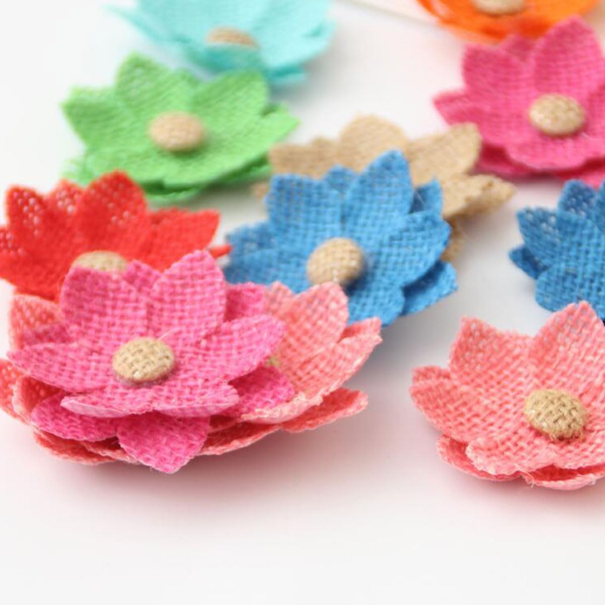 Ewanda store 30 Pcs Mixed Color Burlap Flowers Handmade Rustic Flowers Artificial Flowers for Home DIY Craft Wedding Party Decoration,Color in Random